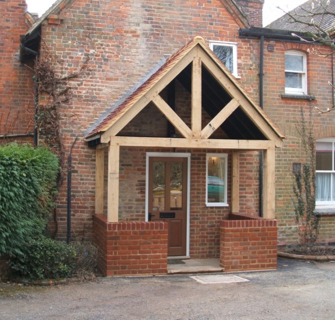 We adjusted the door, installed a side window, created an internal hall and added a porch using oak timber and handmade clay bricks, roof tiles and York stone slabs.